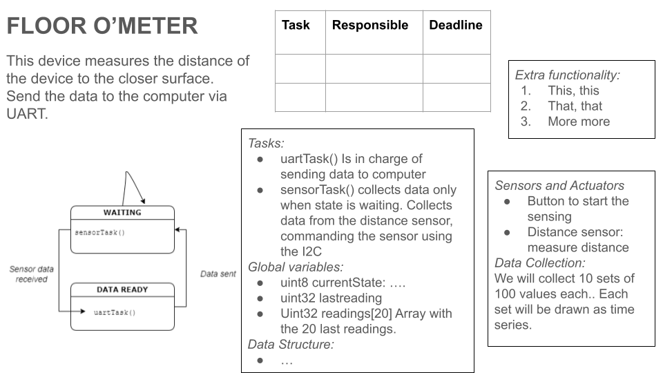 Suunnitelmassa ei tarvitse mennä kovinkaan tarkasti toteutukseen, korkea abstraktiotaso riittää. Asiat voi kertoa ranskalaisilla viivoilla lyhyesti. Suunnitelman koko max yksi a4. Suunnitelma ei ole mitenkään sitova, ts. todennäköisesti se elää työn toteutuksen edetessä. Esimerkki suunnitelmasta alla.